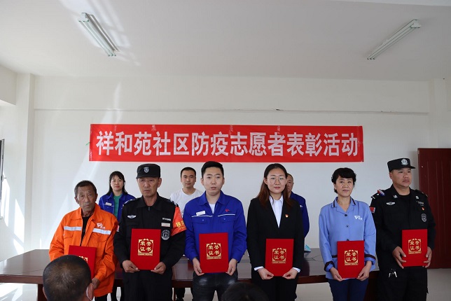 在這次表彰活動(dòng)中,共授予23名志愿者和物業(yè)工作人員榮譽(yù)證書,祥和苑公租房項(xiàng)目經(jīng)理隗公樸接過(guò)鮮紅的榮譽(yù)證書說(shuō):在這次疫情防控工作中,祥和苑社區(qū)黨組織和物業(yè)公司黨支部對(duì)項(xiàng)目處工作人員的關(guān)愛(ài),是物業(yè)人不斷奮戰(zhàn)的精神動(dòng)力,有黨旗的地方就有力量,作為一名老黨員,我會(huì)牢記使命,不負(fù)榮譽(yù),不負(fù)職責(zé),帶領(lǐng)祥和苑項(xiàng)目處全體工作人員,積極配合小黑河鎮(zhèn)社區(qū)做好各項(xiàng)工作,再接再厲,守護(hù)好小區(qū)業(yè)主的健康和平安。