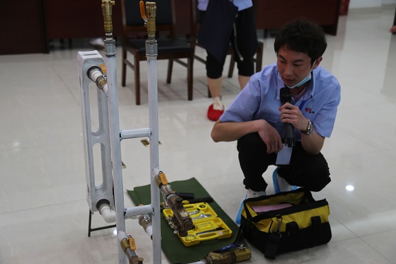 橋靠分公司經(jīng)理阮強告訴筆者,他們就是供熱一線員工,面對的就是用戶,遇到過各種各樣的用戶訴求。為供好熱、服好務,所以平時對職工要求非常嚴格,橋靠分公司的參賽人員看到他們,緊張到在入場時就把服務工具都掉地上了。