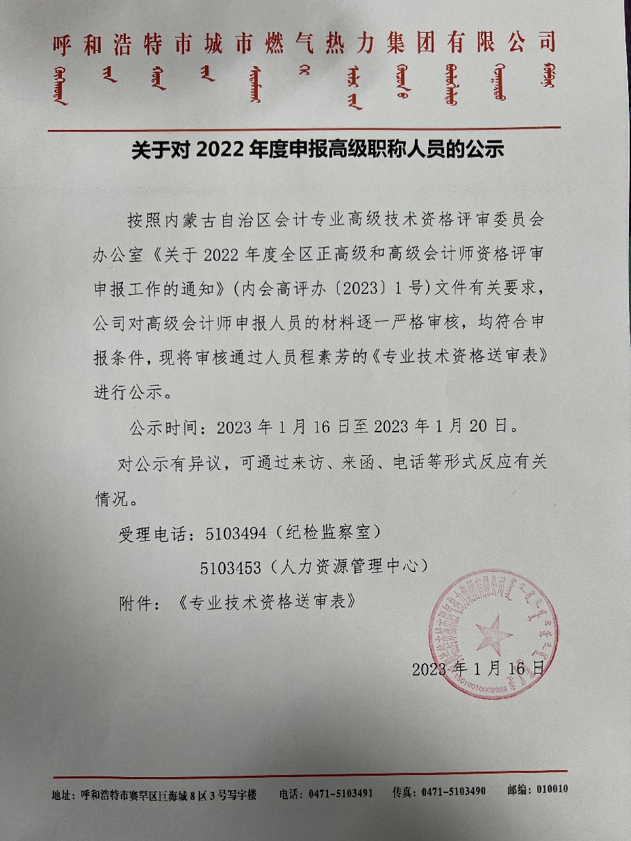 關(guān)于對2022年度申報高級職稱人員的公示